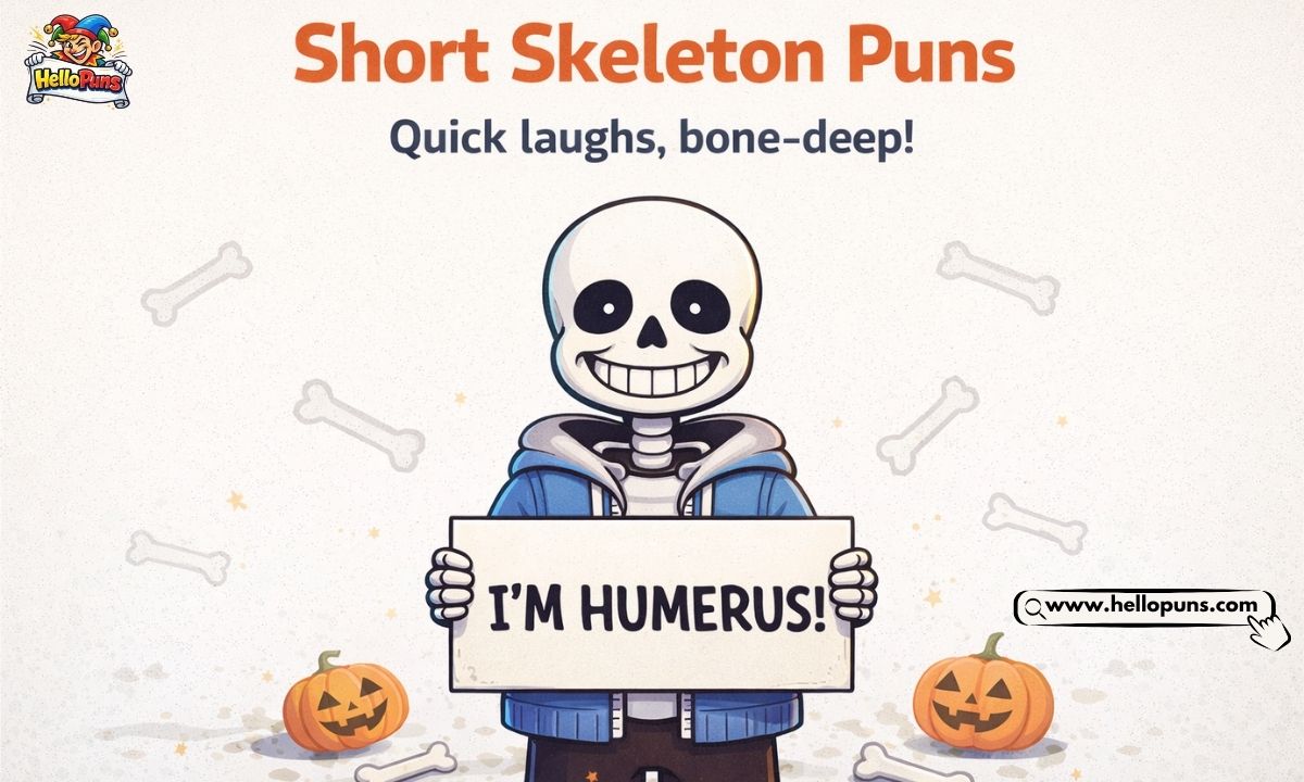 Skeleton puns are clever jokes and wordplays built around bones, skulls, and all things skeletal. They’re the perfect mix of spooky and funny โ great for Halloween, captions, or just cracking up a friend.
