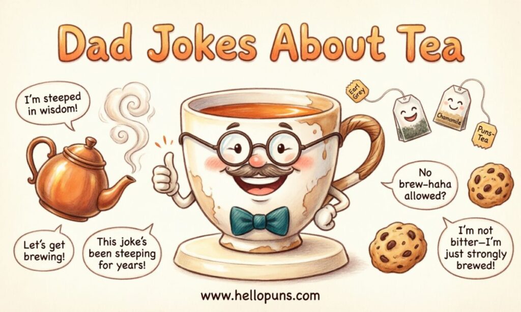 From one-liners to romantic puns, dad jokes to British classics, this collection of tea jokes has everything you need to spill the laughs. β˜•πŸ˜‚ Share them, save them, and steep in the joy β€” because the world is always better with a warm cup and a good laugh!